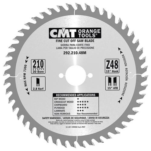 CMT Orange Tools, 292.210.48M, 292-Series Fine Cut-Off Circular Saw Blade 210mm x 210mm, 30mm Bore