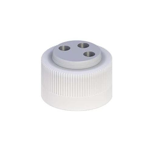 Cole-Parmer, EY-12018-25, VapLock Solvent Delivery Cap with 304 SS Port Thread Inserts, three 1/4"-28, 38-430, White