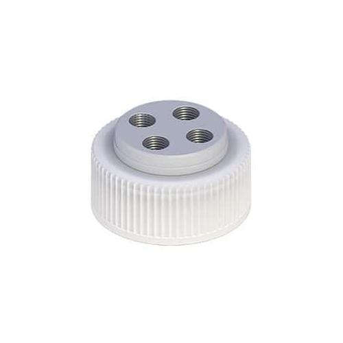 Cole-Parmer, EY-12018-38, VapLock Solvent Delivery Cap w/ 304 SS Port Thread Inserts, four 1/4"-28, 38 mm Wako, White