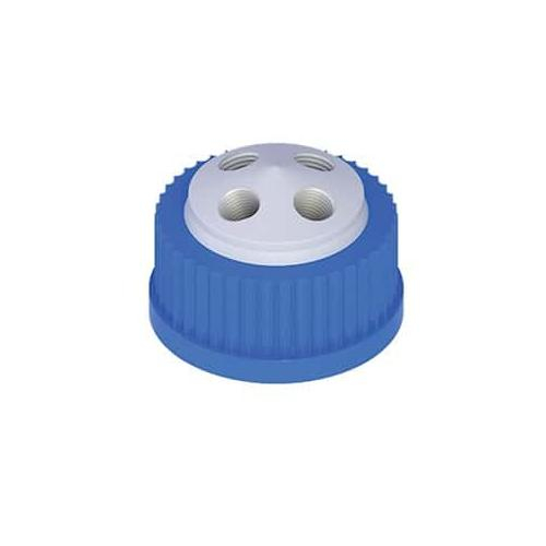 Cole-Parmer, EY-12018-53, VapLock Solvent Delivery Cap, four 1/4"-28 ports, GL32, Blue/White