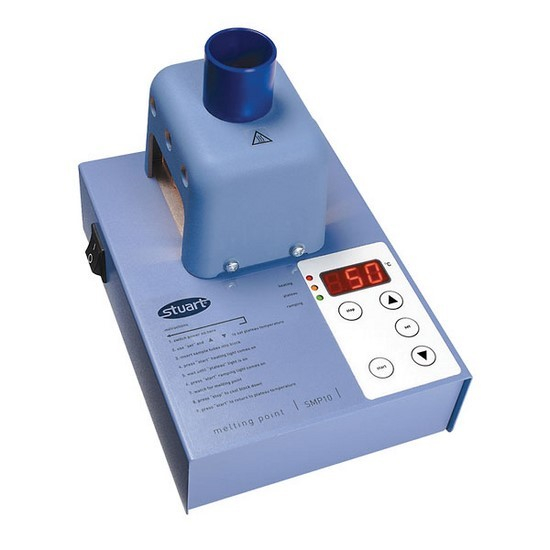 High-resolution digital melting point apparatus offers 0.1°C resolution and variable ramp rate so you can choose either a faster result or a more accurate slow one. Hold key allows more time for you to record the exact melt temperature. The model has extendable back feet for optimal viewing angle and a four-digit LED.