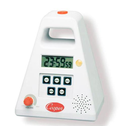 The FT24 has a volume control dial that can be adjusted up to 90 decibels. This 24-hour timer is great for noisy work environments. A red light flashes as the alarm goes off and it's large LCD allows for easy viewing from across a room. The FT24 has one-touch start/stop button, non-skid rubber feet and is wall mountable.