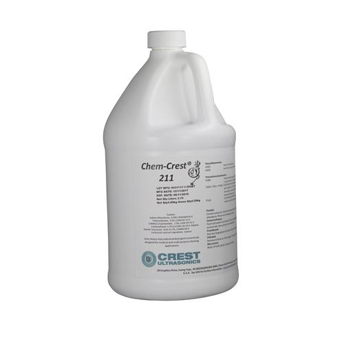 Chem-Crest 211 is typically used at 3–10% by volume in ultrasonic applications. Normal operating temperatures: 120°–180°F, dependent on the material makeup of the substrate, and the contaminants being removed. Recommended rinsing water temperature: 120°–150°F.