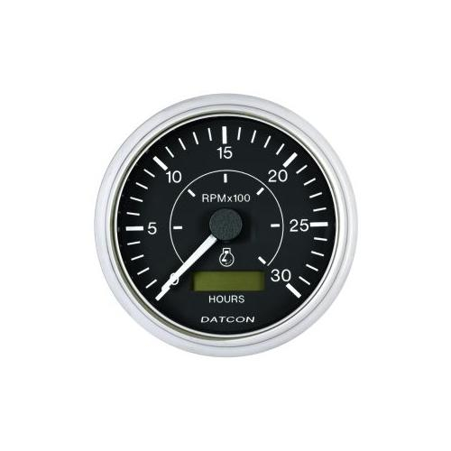 Datcon 122717 Analog II Tachometer with Hourmeter, 12 V, SAE Polished