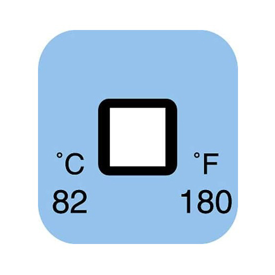 Labels are made up of a series of temperature-sensitive elements sealed between heat-resistant substrates with transparent windows. Each element changes color distinctly as its rated temperature is met or exceeded. The changes to the label are irreversible, providing a temperature history of the surface being monitored. The labels will not delaminate when removed, allowing them to be attached to an inspection report to serve as a permanent record. Ideal for use in the food, automotive, molding and metal working industries. Accuracy is ±1.8°F below 212°F and ±1°F above 212°F.