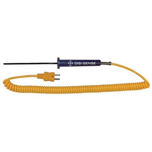 Digi-Sense, WD-08441-12, Compact PFA-Coated Thermocouple Probe, Length 4.5", Grounded / Type K