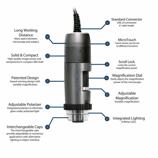 Dino-Lite, AF4115ZTF, Edge Series USB Microscope Polarizer Wireless Ready with Polarizer & Extra-long WD