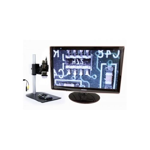 The AM5212MNZT Edge Series features a rugged aluminum alloy metal housing, TV Component output interface combined with revamped optics and 960H sensor technology, it is the latest upgrade to existing TV models such as the AM4112 series. The 960H sensor has a resolution of 960 x 480. This model has a 20x ~ 220x magnification range and a built on polarizer to help suppress unwanted glare or reflections. The MicroTouch button on this model is configured to toggle the LEDs on/off. No computer or software required for this model that connects directly to a monitor or TV via Video Component connection.