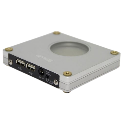 Backlight stage polarizer designed for use with Dino-Lite models with built on polarizers. This easy to use backlight stage with polarizing ability comes with an attachable swing arm target holder for specific placement of objects. The BLZW1 is a sturdy and attractive backlight stage that is powered through a USB cord or AC Adapter. Adjustment of the polarizer is simply performed by sliding the wheel adjustment located on the front of the stage. Researchers may find that the BL-ZW1 could be an economic substitute to the traditional polarizer microscope. The BL-ZW1 backlight stage combined with a polarizing model has the potential to meet many applications covered by polarizing microscopes.