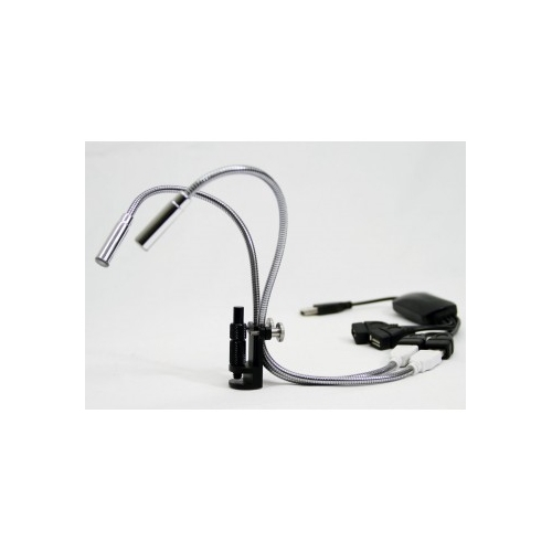 This attachment accessory is able to clamp to a variety of bases including the MS35B, MS36B, MS35T and RK-10A. The MSAK812 can firmly secure two LED lights for aided viewing. Product comes with a USB hub that has 4 ports which can be used for the included 2 LED lights and more. This product works perfectly with the the BL-GC1 specimen holder (not included) that can be attached as a post into the MSAK812 and can hold an object and rotate for additional viewing.