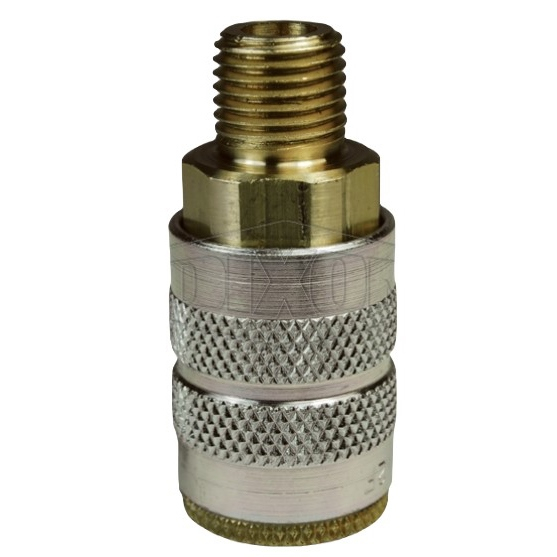 Dixon Valve, 2FM3-B-BV-BS, F-Series 1/4" x 3/8" Pneumatic Manual Male Threaded Coupler, Brass, Brass Valve, Brass Sleeve