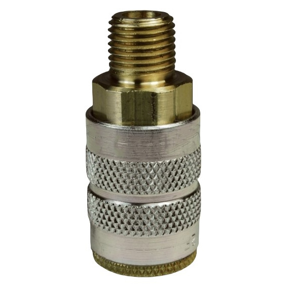 Dixon Valve, 3FM2-B-ZV-LS, F-Series 3/8" x 1/4" Pneumatic Manual Male Threaded Coupler, Brass, Steel Valve, Lock Sleeve