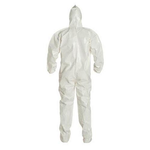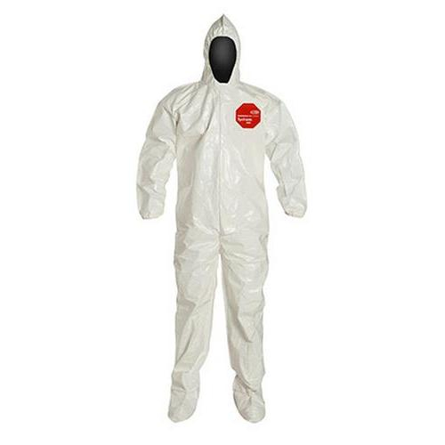 DuPont, SL122BWH4X001200, Tychem 4000 Coverall, Hood, Elastic Wrists, Socks, Storm Flap, Bound, White, 4XL