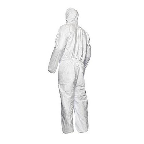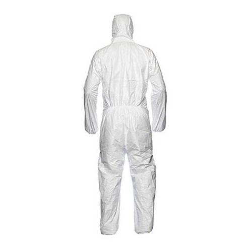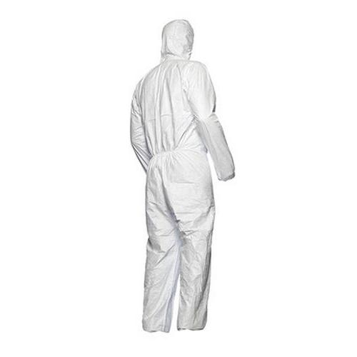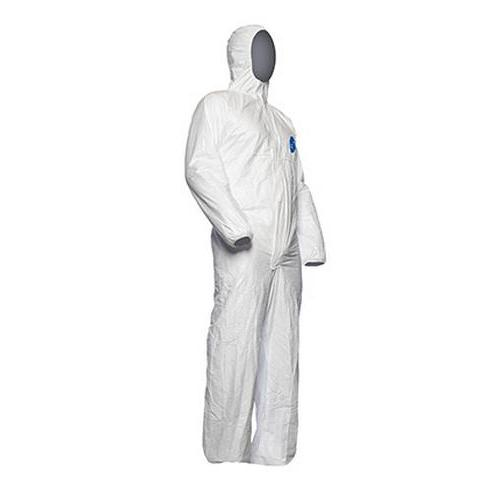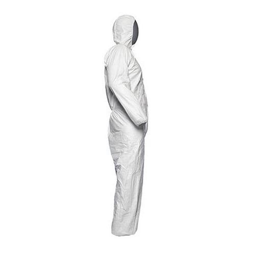 DuPont, TY198SWHMD002500, Tyvek® 500 Coverall with Hood, Serged External Seams, Elastic Wrists, Ankles and Face, Elastic Waist, Storm Flap, White, Medium