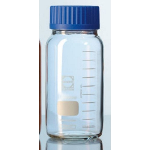 Duran GLS 80 wide neck bottles are ideal for pouring, filling, mixing, etc. The 80mm wide neck allows the easy use of spoons, spatulas and tweezers. Even large-volume funnels can be inserted into the bottles without difficulty. Supplied with blue polypropylene quick release caps (less than two turns to lock) and pouring ring that are autoclavable up to 140 degrees C.