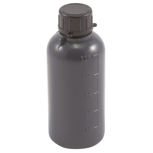 These opaque leakproof bottles are excellent for storing light sensitive materials, either liquid or solid. Body in Polyethylene (PE); cap in Polypropylene (PP). A LDPE neck insert plug provides maximum security. The easy grip PP screw closure contains tag holes and may be wired securely to either of 2 shoulder holes. Sloping shoulders reduce any possibility of residue deposits. Suitable for food grade products.
