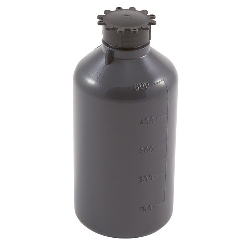 These opaque leakproof bottles are excellent for storing light sensitive materials, either liquid or solid. Body in Polyethylene (PE); cap in Polypropylene (PP). A LDPE neck insert plug provides maximum security. The easy grip PP screw closure contains tag holes and may be wired securely to either of 2 shoulder holes. Sloping shoulders reduce any possibility of residue deposits. Suitable for food grade products.