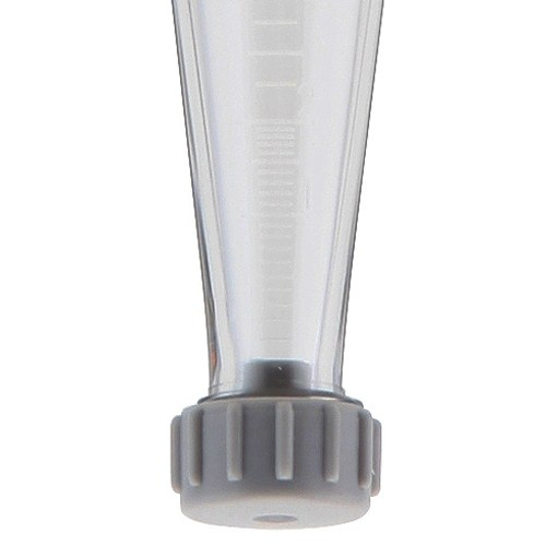 Unbreakable transparent and molded of styrene-acrylonitrile. Leakproof screw closure at tip for easy withdrawal of sediment and ease in cleaning.
