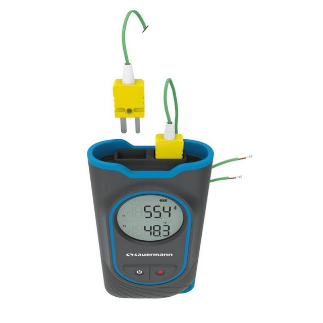 The palm-sized Sauermann Si-TT3 dual input thermometer easily measures K thermocouple temperature.