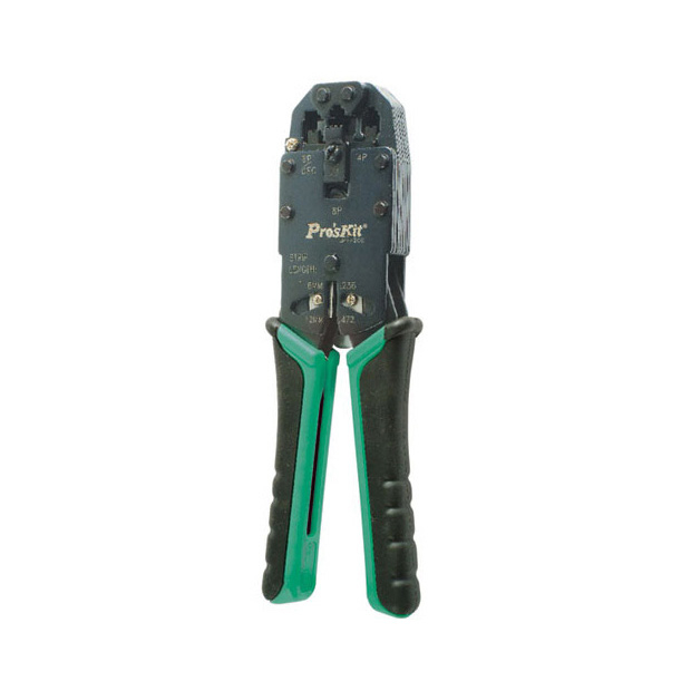 The professional modular crimping tools work for solid and stranded wires and have built-in cutting function on the rear and stripping function on the front. The smooth ratcheting mechanism will ensure positive connections each time and keep the metal frame and its built-in dies rigid and durable.