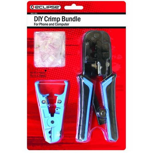 Complete tool bundle along with modular plugs to make RJ45 or RJ11 patch cords for phone and computer. It includes crimper, stripper and 10 pcs RJ45, 10 pcs RJ11 connectors to make your work smart and easy.