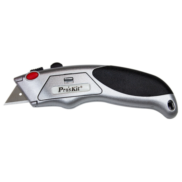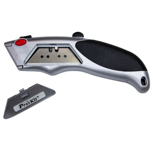 This Utility Knife is versatile and perfect for cutting Sheetrock, carpet, upholstery, and more. It features a convenient blade storage compartment (6 blades included).