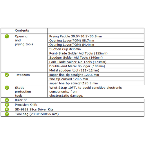 The PK-9112 is a complete, comprehensive kit. It includes the essential tools for the 3C repair and refurbish market. It allows opening of tablets, notebooks, electronic device cases and most branded video games such as Apple, HTC, Samsung, Sony, Microsoft, Nintendo, Sega and more.