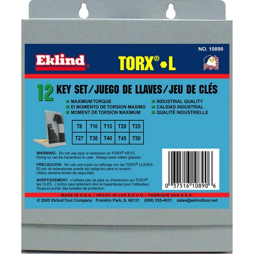 Eklind, 10890, Torx Short Series T8 - T50 10-Piece Hex L-Key Set in Metal Box