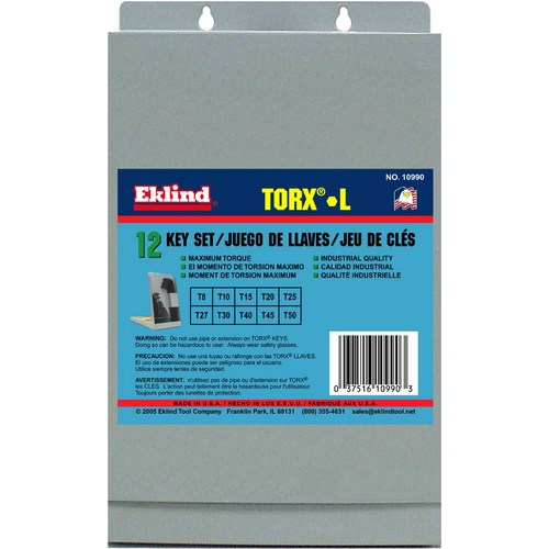 Eklind 10990 Torx Long Series T8 - T50 Hex L-Key Set in Metal Box