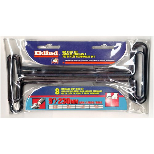 Eklind, 33198, Standard Grip Inch Set of 8 Hex T-Keys with 9" Arm in Pouch