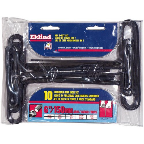 Eklind 33610 Standard Grip Set of 10 Hex T-Keys with 6" Arm in Pouch