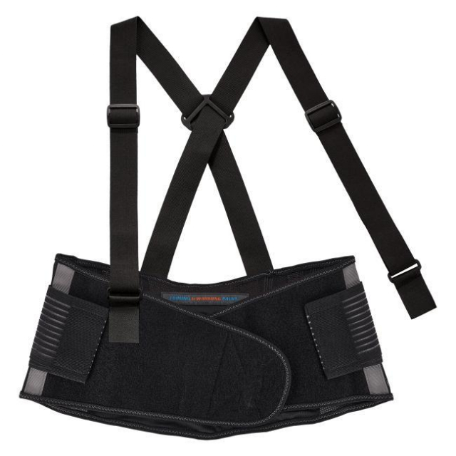 The ProFlex 1675 Back Support Brace not only promotes proper lifting techniques but also offers versatile hot/cold therapy. ProFlex back supports are designed to remind workers of proper lifting techniques while also enhancing the body's intra-abdominal pressure, moving the stress away from the spine for back pain relief. Featuring 480D spandex body material with a v-shaped design, this back support brace provides a firm level of support and also features mesh material on the backside for increased airflow. Rubber track webbing stays are sewn onto the interior to help keep support in position and prevent it from riding up.