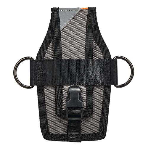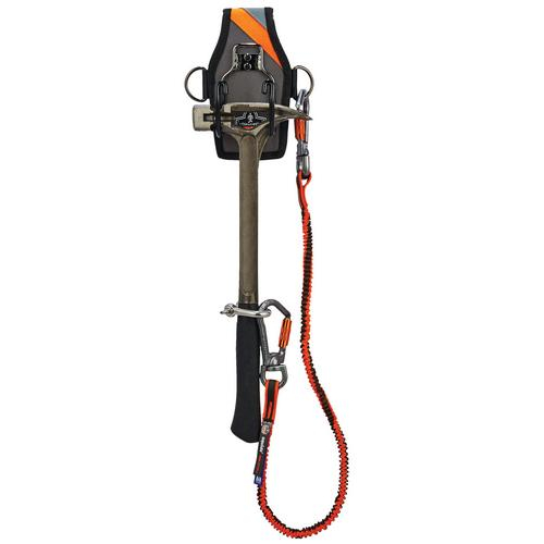 The Hammer Holster secures most styles and sizes of hammers. An innovative modular buckle connection system on the back easily connects to standard tool belts and fall protection harnesses without having to remove them from a worker. Two D-rings on the holster allow for tool lanyard attachment for safety and security.