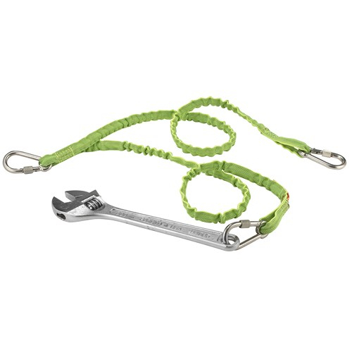 Ergodyne, 19083, Squids 3311 Twin Leg Stainless Steel Carabiner with 35" - 42" Lime Tool Lanyard
