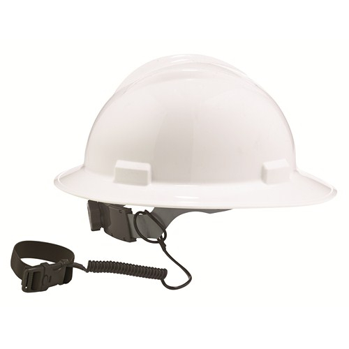 Coil Hard Hat Lanyard with Buckle: Easily and comfortably secures a hard hat to a worker to prevent the item from falling. Coil design reduces lanyard length and prevents snag and tangle hazards.