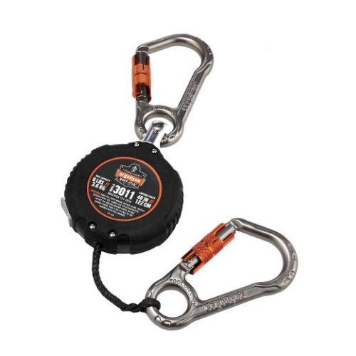 The Squids 3011 Retractable Tool Lanyard is a lightweight and extremely durable tethering solution designed to mount to a D-ring user 's belt or a separate anchor point. Using a retractable lanyard limits potential snag hazards compared to standard lanyards. This lanyard can tether tools weighing 0.5lbs/0.23kg in a retracted state and prevents tools weighing 8lbs / 3.6 kg from falling on people or objects below when working at-heights. The retractable tethering cord is made of high-strength, cut-resistant Dyneema with a protective sleeve over the exposed cord to reduce wear and tear for a longer life. The durable ABS plastic housing is textured for better grip and is designed to protect the internal workings of the retractable. Featuring a tapered cord exit to limit the debris being retracted back into the housing with the cord. Even with its incredible durability this heavy-duty retractable lanyard weighs less than 0.5lb / 0.22kg and measures 48in / 122cm when fully extended.
