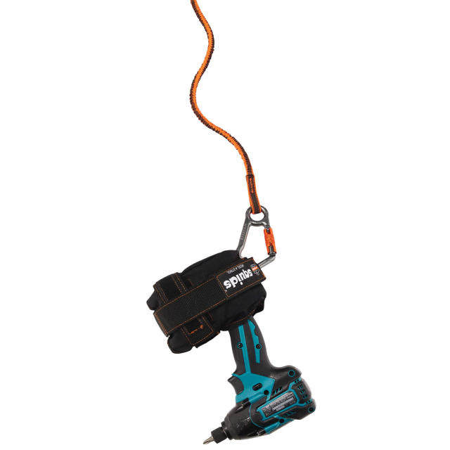 Shock absorbing tool lanyard with locking carabiner on both ends: Designed and tested to prevent falling objects and reduce the force your body sees if a drop occurs by absorbing the energy transmitted through the tool lanyard. By reducing the shock load this design prevents the tool from pulling the user down with it protecting those above as well as those below.