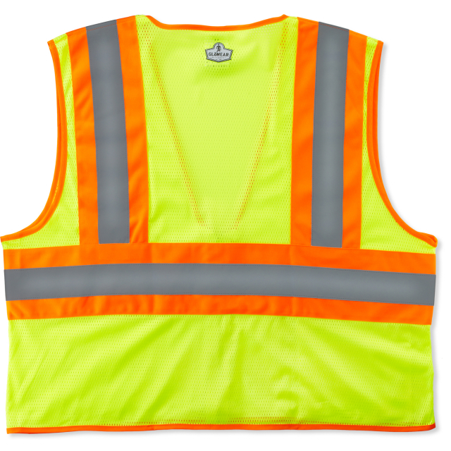 Class 2 Economy Two-Tone Vest: Mesh fabric, zipper closure. See the study, see the person. Two-tone works.