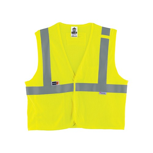 Ergodyne, 21499, GLoWEAR 8260FRHL 4XL/5XL-Size Lime Type R Class 2 FR Modacrylic Vest with Hook & Loop Closure