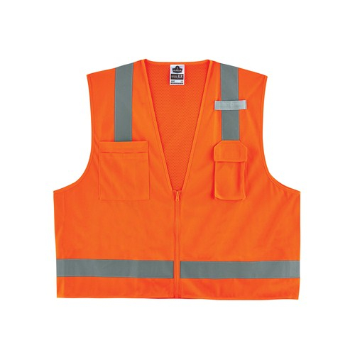 Ergodyne, 24019, GLoWEAR 8249Z 4XL/5XL-Size Orange Type R Class 2 Economy Surveyors Vest with Zipper Closure