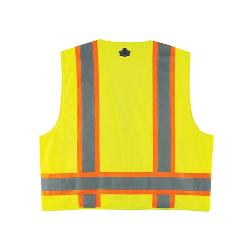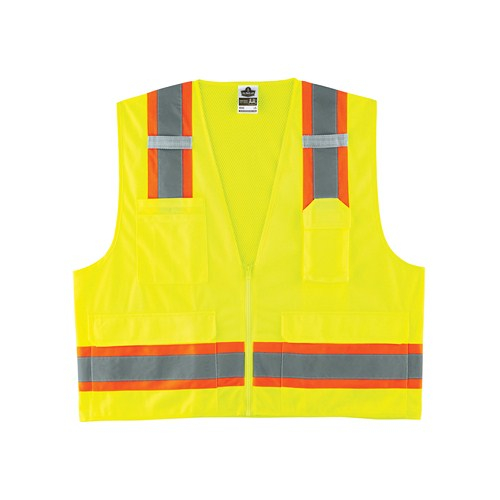 Ergodyne, 24079, GLoWEAR 8248Z 4XL/5XL-Size Lime Type P Class 2 Two-Tone Surveyors Vest with Zipper Closure