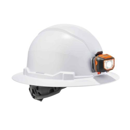 The Skullerz 8971 Class E Full Brim Hard Hat + LED Light with 4-Point Suspension is heavy-duty, yet lightweight and comfortable head protection built to protect the top of the head from falling objects or bumping into stationary objects. A padded, moisture-wicking and odor-resistant sweatband and top pad lines the sides, forehead and top interior and is removable for easy replacement. This cap-style hard hat can be worn backwards to improve upward visibility or forward to keep sun and rain away from the eyes.