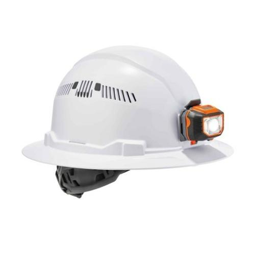 The Skullerz 8973 Class C Full Brim Hard Hat + LED Light with 4-point suspension is heavy-duty, yet lightweight and comfortable head protection built to protect the top of the head from falling objects or bumping into stationary objects. A padded, moisture-wicking and odor-resistant sweatband and top pad lines the sides, forehead and top interior and is removable for easy replacement. This full-brim style helps keeps rain away from the eyes and provides extra protection against falling or flying debris. Also offers all-around protection from the sun, humidity and heat. The open frame design in combination with the adjustable venting offers the best of both worlds: a cooler hard hat in the heat and a dry hard hat in the rain. These vents release heat buildup and allow air to circulate, reducing perspiration in hot and humid working environments.