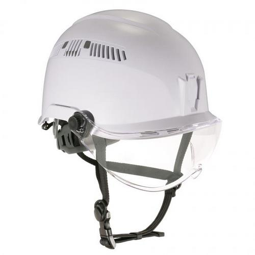 The Skullerz 8975V Safety Helmet with Visor Kit includes the 8975 Class C Safety Helmet and 8991 Safety Helmet Visor. This 6-point suspension helmet provides heavy-duty yet lightweight and comfortable head protection to shield the front, back, top and sides of the head from falls, dropped objects or bumping into stationary objects. The compact helmet design increases all-over impact protection and improves visibility, and a chin strap ensures the helmet remains secure to the wearer's head upon impact or sudden movement. For increased eye and face protection, the easy-to-mount visor Features with all optional accessories a UV protective z87 lens with a permanent anti-fog and a scratch-resistant hard coat tested to EN166.