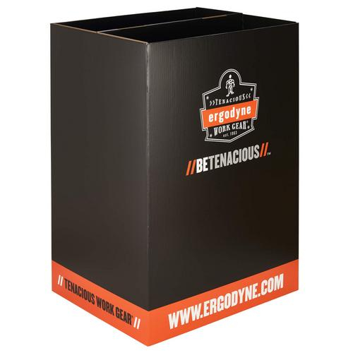 This cardboard floor display is a great way to draw attention to a variety of Ergodyne products within a retail setting. The dumpbin design allows for showcasing an assortment of items in a more prominent location.