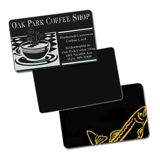 Black Matte PVC-U cards are made of unplasticized PVC and have a slightly "rough" surface, similar to a matte photograph. PVC-U is food contact compliant. Print in monochrome white, silver or gold resin and get great-looking cards for retail price tags, membership cards or loyalty cards.