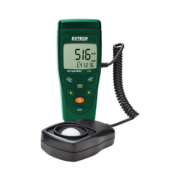 The LT45 LED light meter is useful for measuring and optimizing environmental light levels in a wide range of environments, including office buildings, manufacturing plants and warehouses, university campuses, schools, hospitals, and many other locations. OSHA regulates workplace lighting because illumination must be adequate for assigned tasks, and light meters are used to verify regulatory compliance, as well as state and local public safety codes and ordinances. Use of LED lighting is on the rise because it is more efficient to operate, it emits stable, high quality illumination, and the technology is dropping in price.