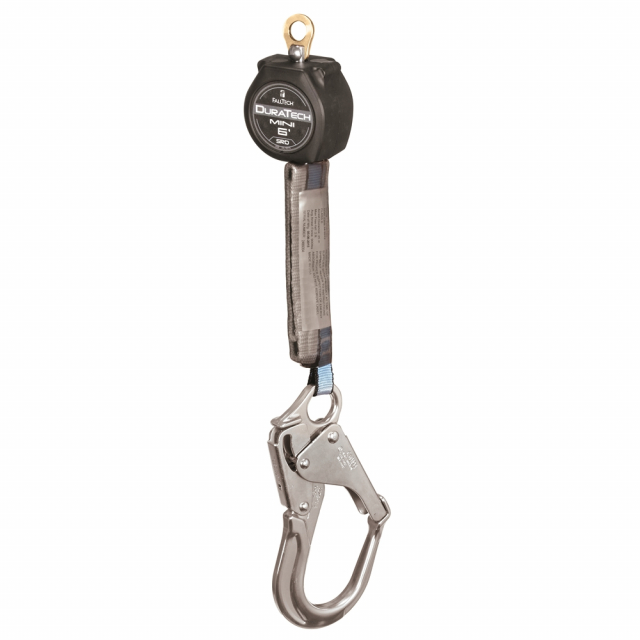 FallTech, 72706SA5, DuraTech 6' Single-Leg Web Self-Retracting Device, Swivel Eye & Al Rebar Hook
