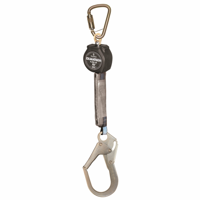 FallTech, 72706SB3, DuraTech 6' Single-Leg Web Self-Retracting Device, Carabiner & Steel Rebar Hook
