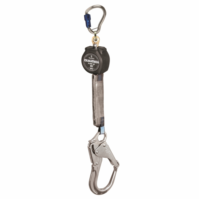 FallTech, 72706SG5, DuraTech 6' Single-Leg Web Self-Retracting Device, Al Carabiner & Al Rebar Hook